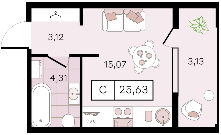 | студия | 25.63 / 15.07 м² | от 3 588 200 руб. (140 000 руб./м²) | Планировка | |