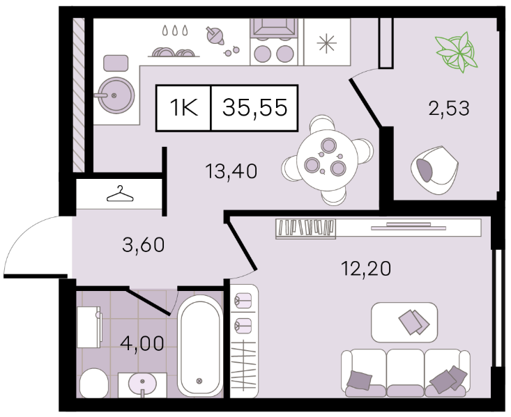 | 1 | 35.55 / 12.20 м² | от 4 977 000 руб. (140 000 руб./м²) | Планировка | |