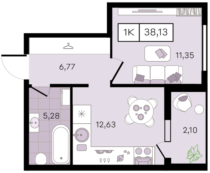 | 1 | 38.13 / 11.35 м² | от 5 338 200 руб. (140 000 руб./м²) | Планировка | |