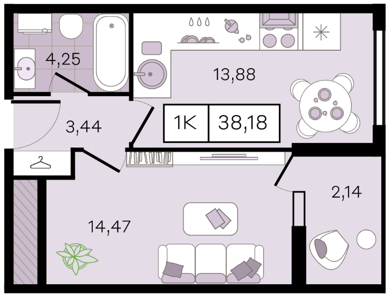 | 1 | 38.18 / 14.47 м² | от 5 345 200 руб. (140 000 руб./м²) | Планировка | |