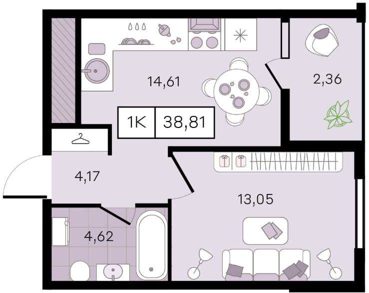 | 1 | 38.81 / 13.05 м² | от 5 433 400 руб. (140 000 руб./м²) | Планировка | |