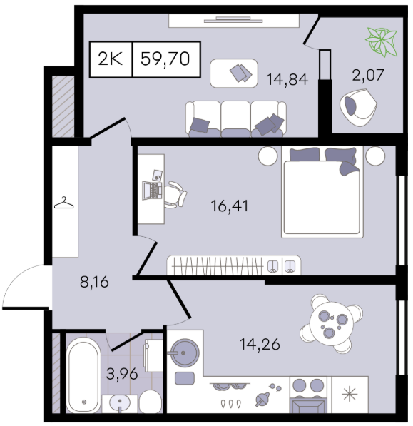 | 2 | 51.90 / 23.31 м² | от 6 747 000 руб. (130 000 руб./м²) | Планировка |