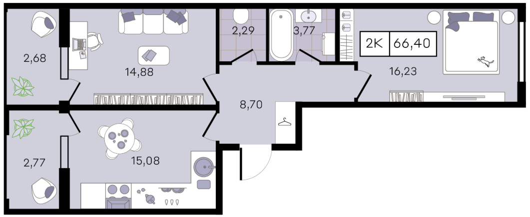 | 2 | 66.12 / 28.60 м² | от 7 934 400 руб. (120 000 руб./м²) | Планировка | |