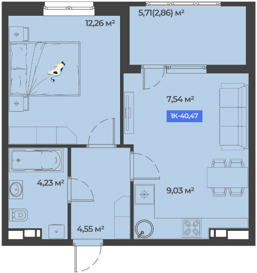 | 1 | 40.47 / 12.26 м² | от 5 666 000 руб. (140 005 руб./м²) | Планировка | |