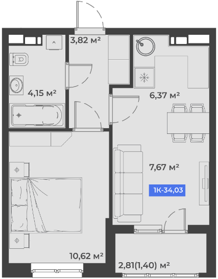 | 1 | 34.03 / 10.62 м² | от 5 105 000 руб. (150 015 руб./м²) | Планировка | |