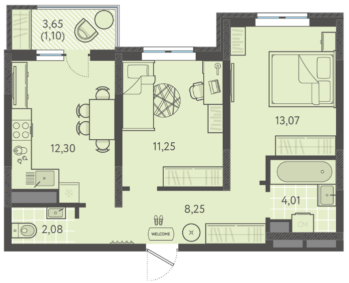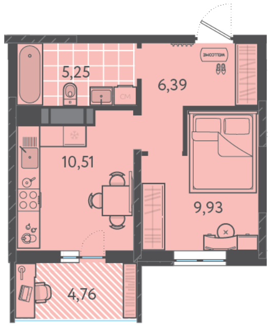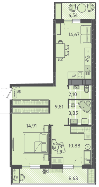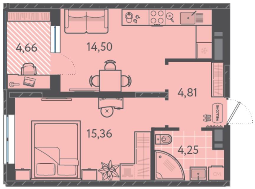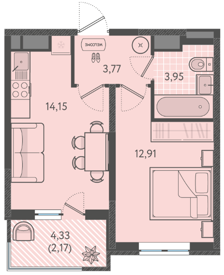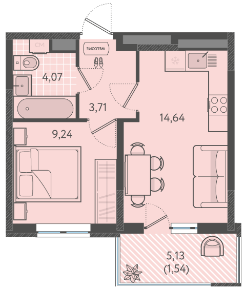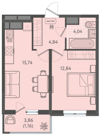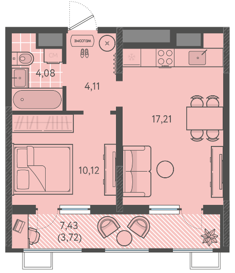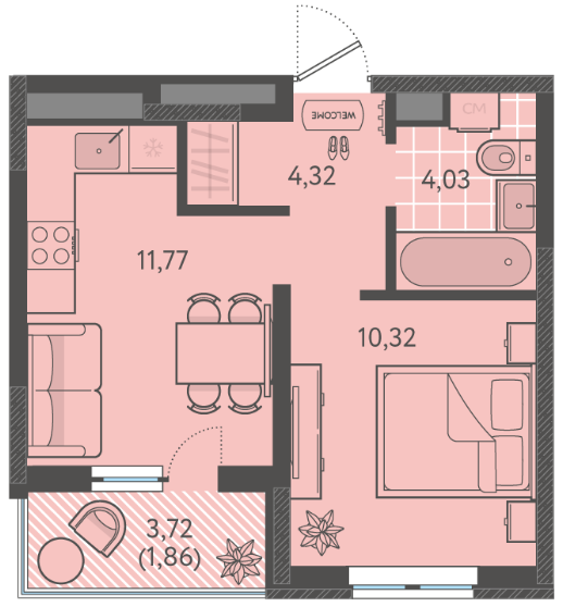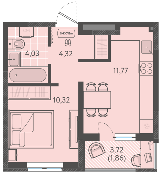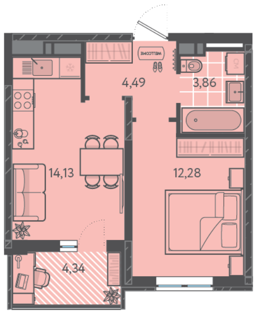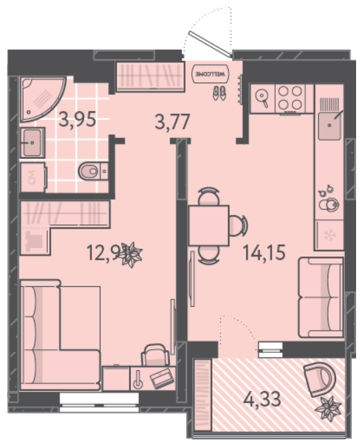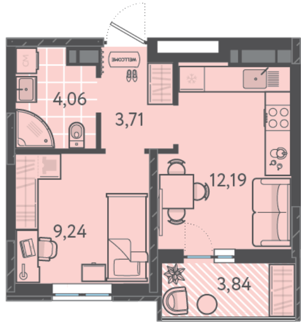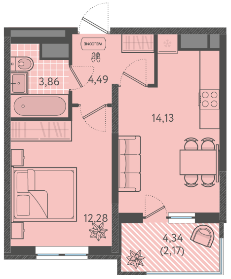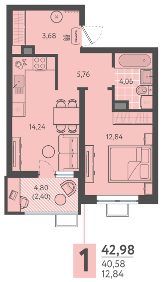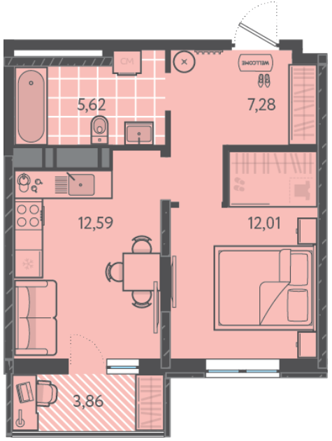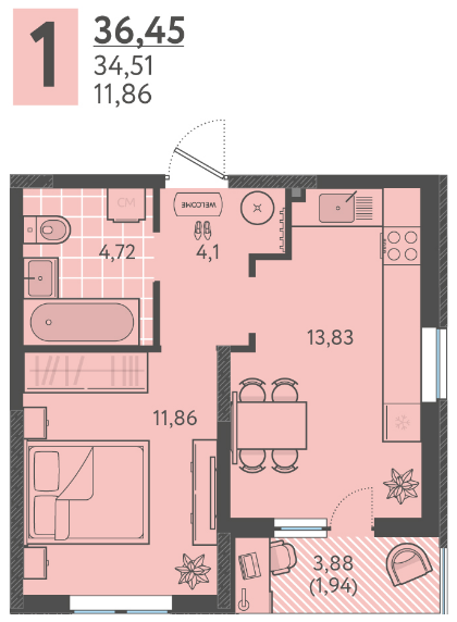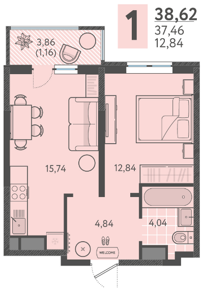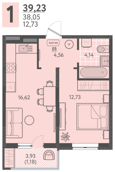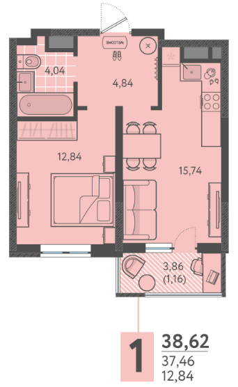 | 1 | 38.62 / 12.84 м² | от 4 712 860 руб. (122 032 руб./м²) | Планировка | |