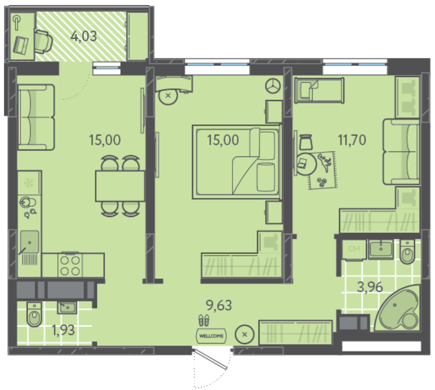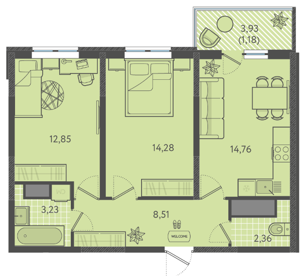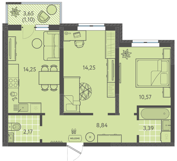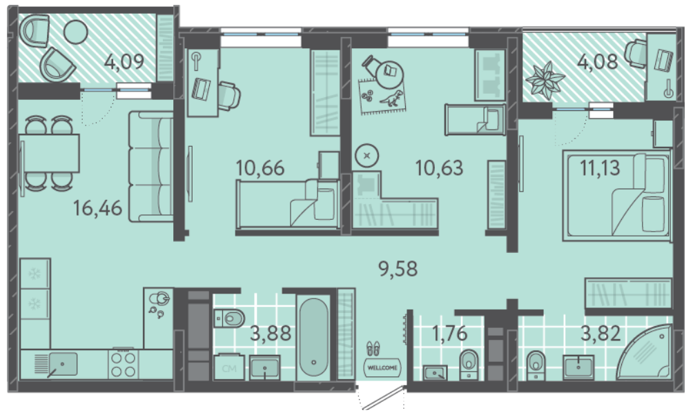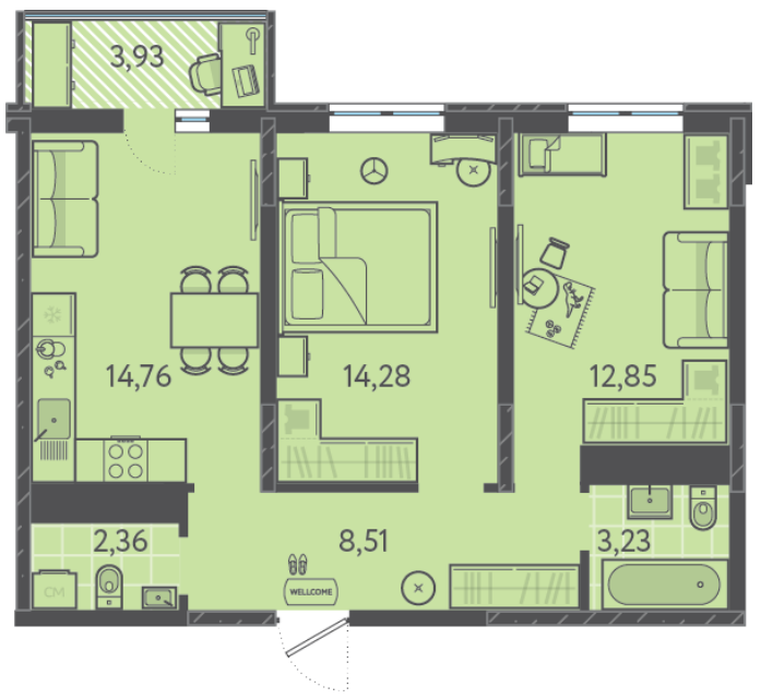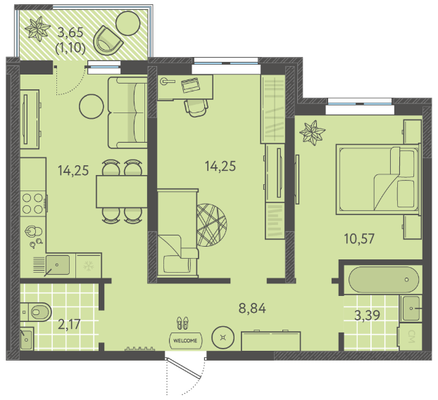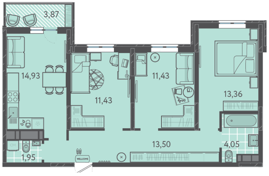 В телеграме увидели в подборке двушку с двумя лоджиями на разные стороны. Загорелись ею. По семейной ипотеке, которую собирались брать, сумма платежа нам подходит. В комплексе 3 детсада и поликлиника, как будто полноправный район города, а не ЖК