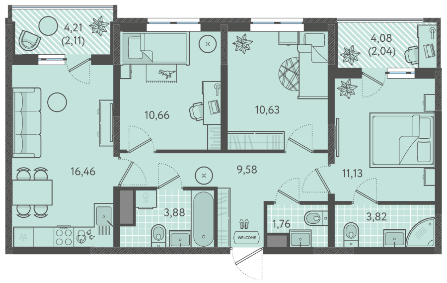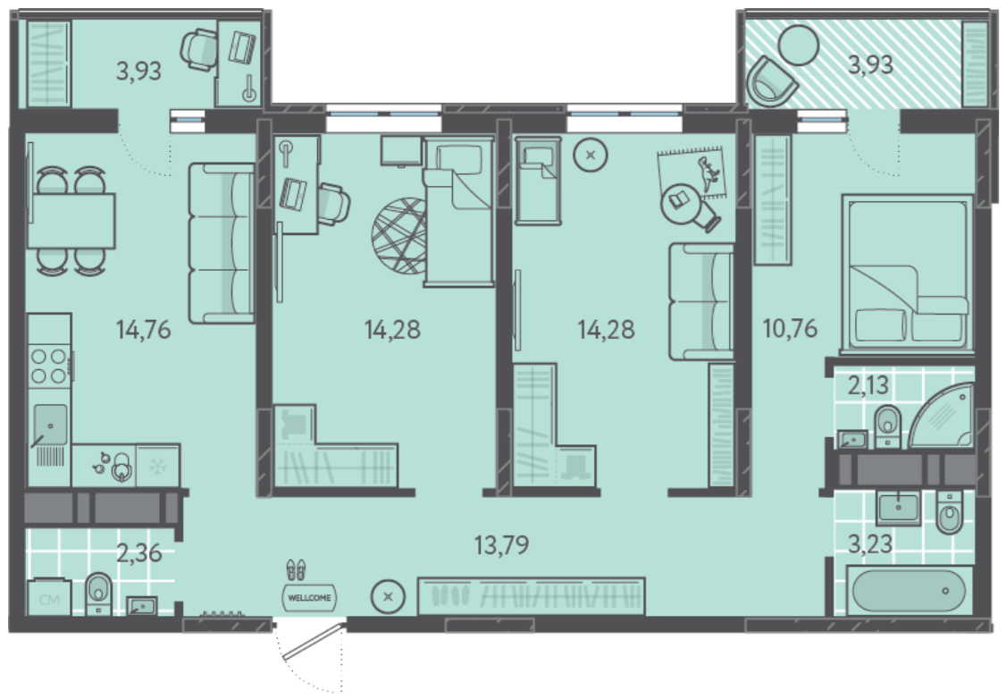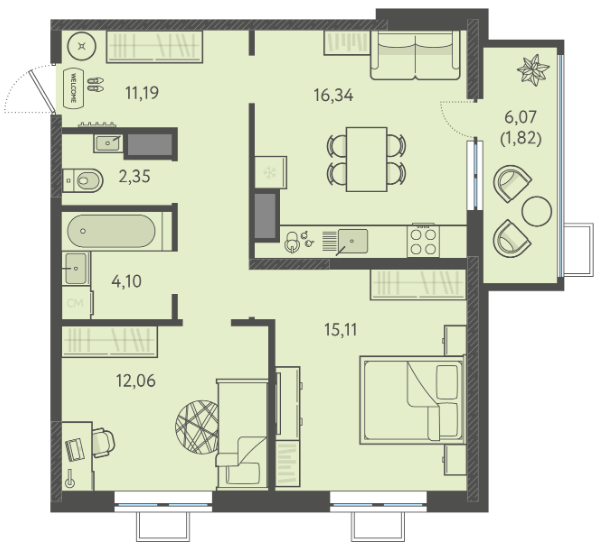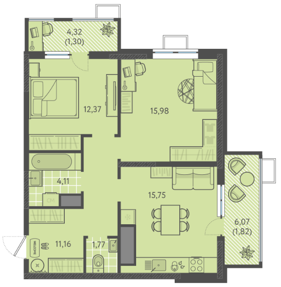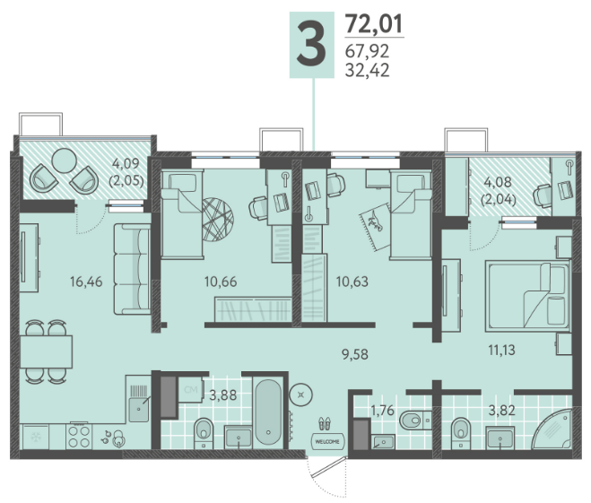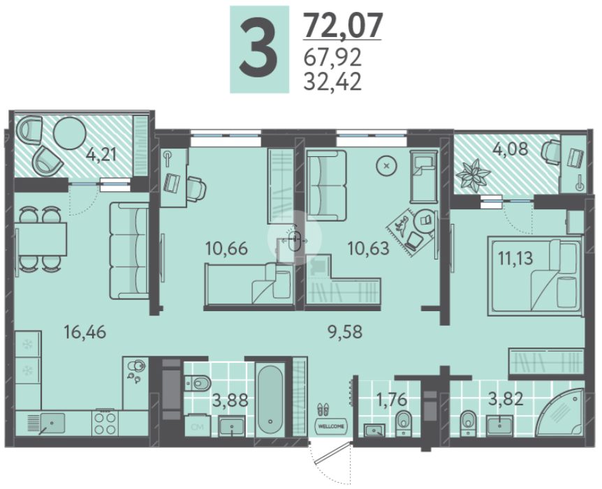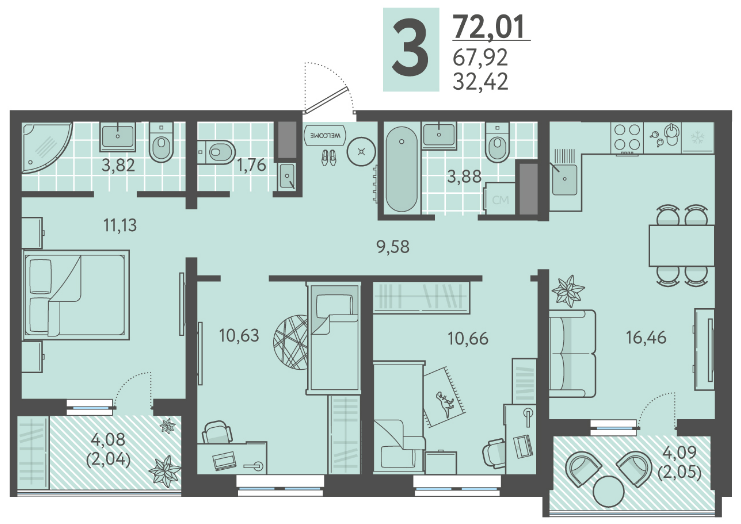 | 3 | 72.07 / 32.42 м² | от 7 554 750 руб. (104 825 руб./м²) | Планировка |