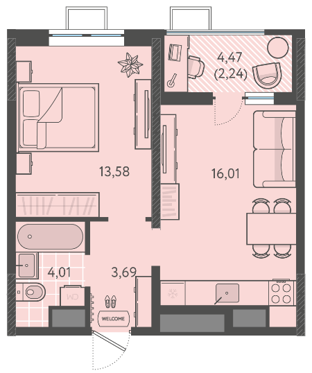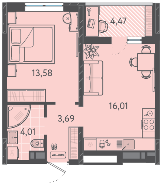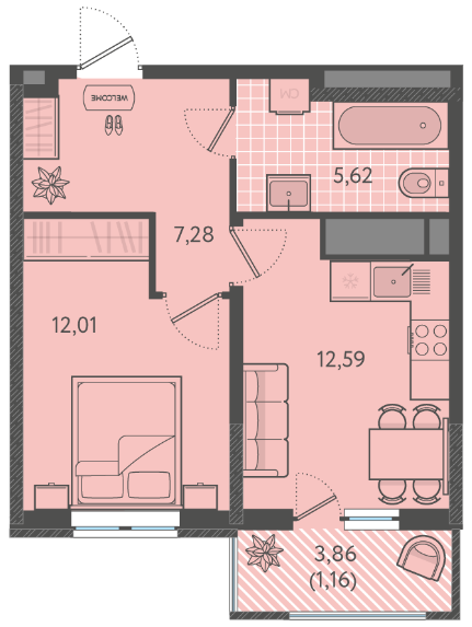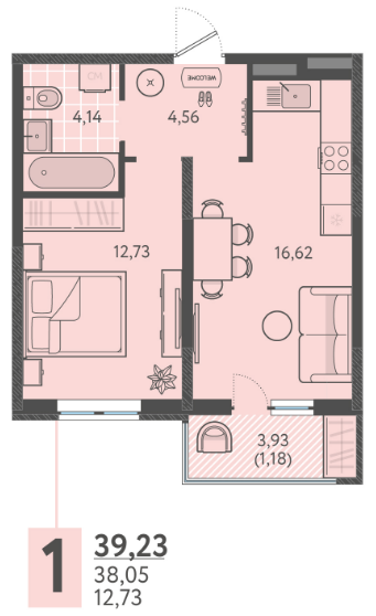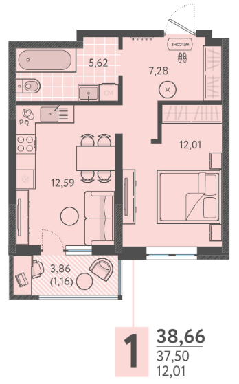 | 1 | 38.66 / 12.01 м² | от 4 484 560 руб. (116 000 руб./м²) | Планировка | |