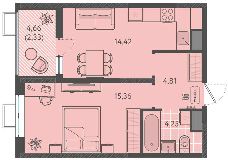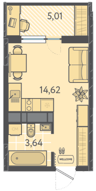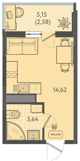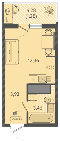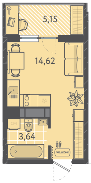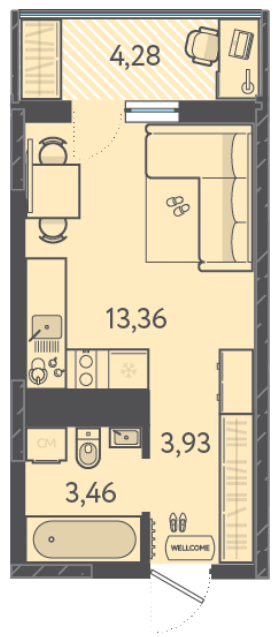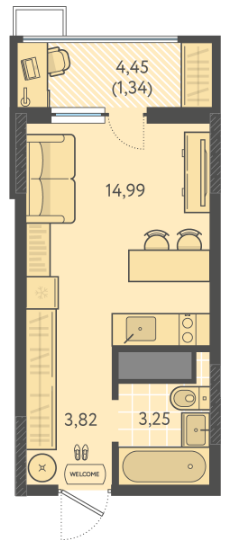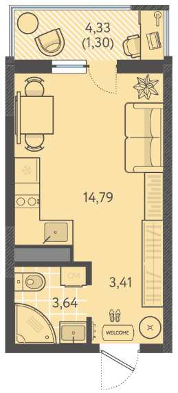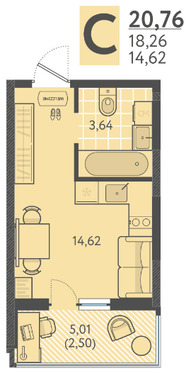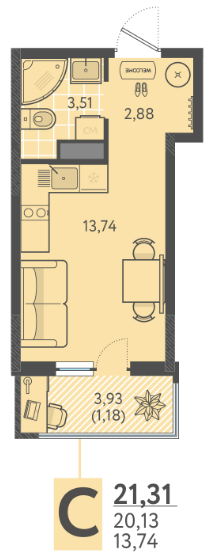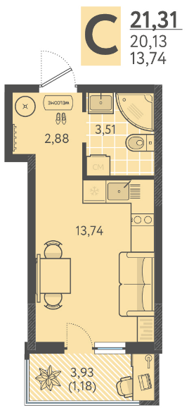 | студия | 21.31 / 13.74 м² | от 2 663 750 руб. (125 000 руб./м²) | Планировка | |