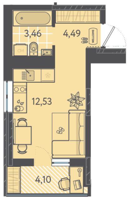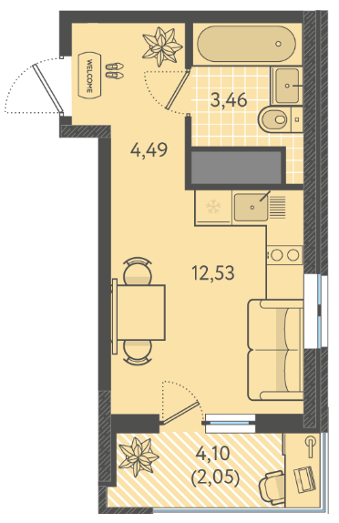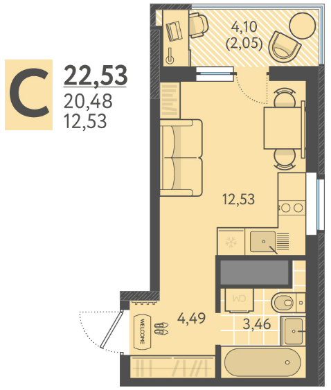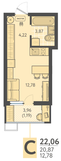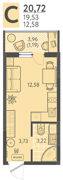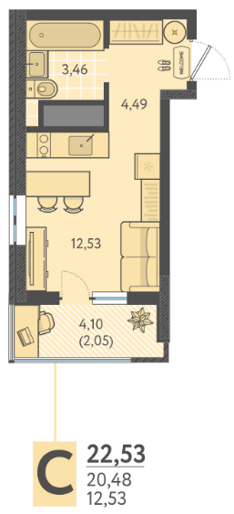 | студия | 22.15 / 12.53 м² | от 2 879 500 руб. (130 000 руб./м²) | Планировка | |