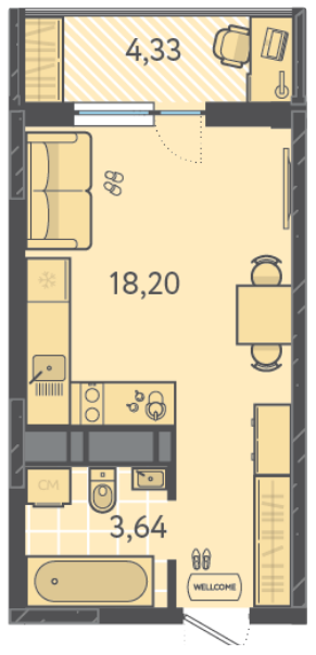 | студия | 23.18 / 18.20 м² | от 3 592 900 руб. (155 000 руб./м²) | Планировка | |