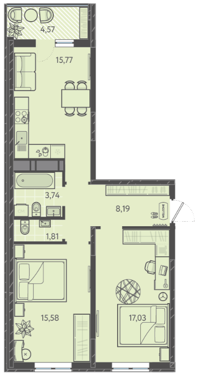 Купили под мат кап, сдача нашего корпуса только через год. Весомый нюанс,из-за которого долго сомневались. Но в итоге купили. Сейчас есть где жить, а к моменту переезда будет готова социалка. С детьми это важный пунктик.