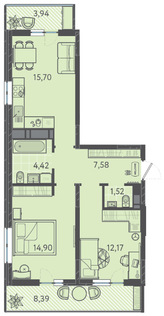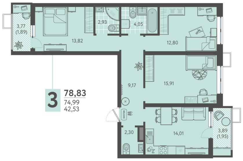 | 3 | 77.96 / 39.32 м² | от 8 175 300 руб. (104 865 руб./м²) | Планировка |