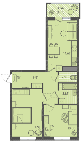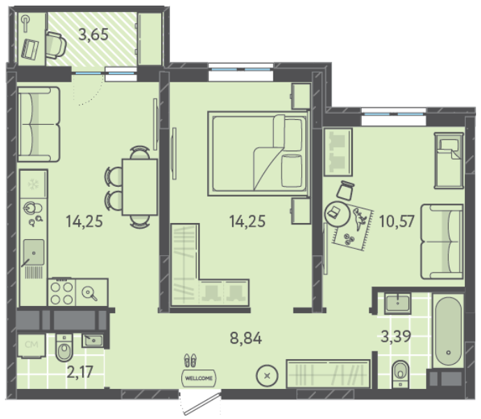 | 2 | 61.75 / 27.17 м² | от 6 647 400 руб. (107 650 руб./м²) | Планировка | |