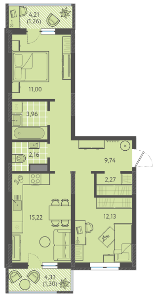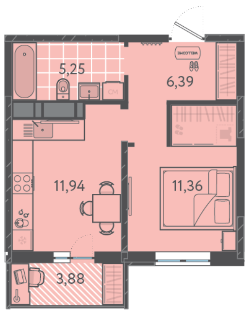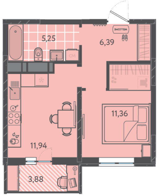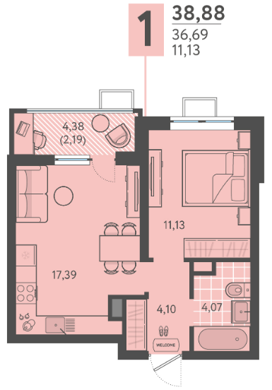 | 1 | 38.88 / 11.13 м² | от 4 587 840 руб. (118 000 руб./м²) | Планировка | |