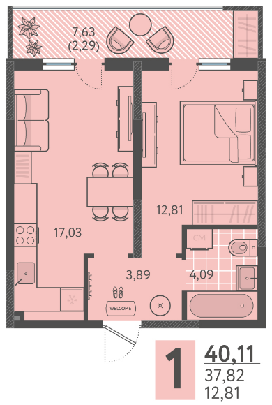 | 1 | 40.11 / 12.81 м² | от 4 836 870 руб. (120 590 руб./м²) | Планировка | |
