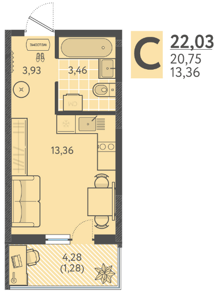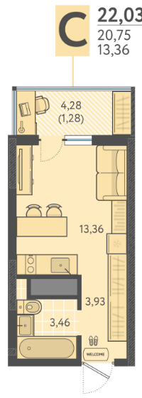 | студия | 22.15 / 13.36 м² | от 3 101 000 руб. (140 000 руб./м²) | Планировка | |