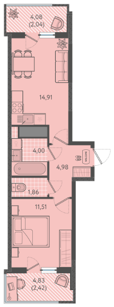 | 1 | 41.17 / 15.36 м² | от 4 734 550 руб. (115 000 руб./м²) | Планировка | |