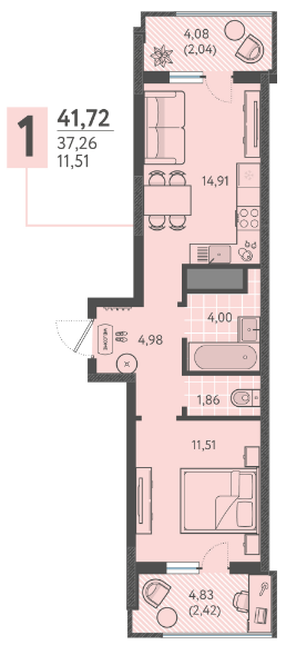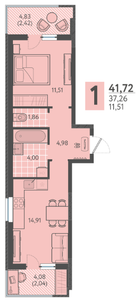 | 1 | 41.72 / 11.51 м² | от 6 463 500 руб. (154 926 руб./м²) | Планировка | |