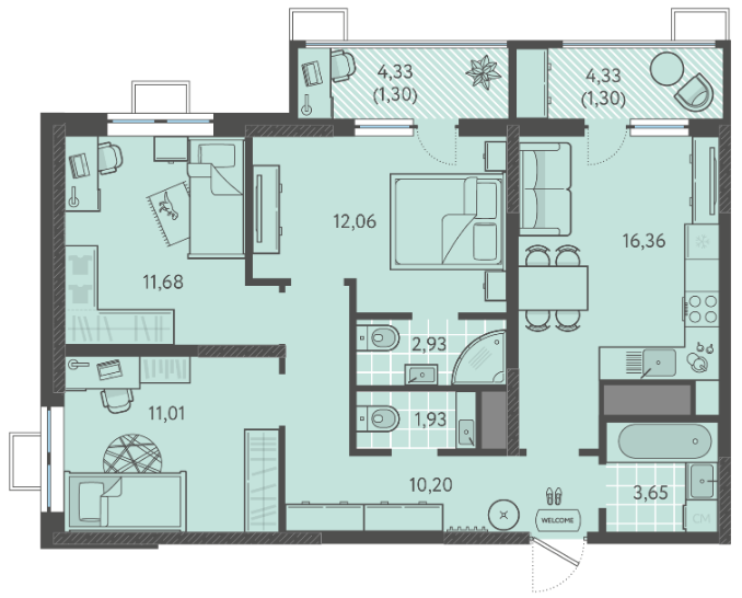 | 3 | 73.36 / 36.31 м² | от 8 961 780 руб. (122 162 руб./м²) | Планировка | |