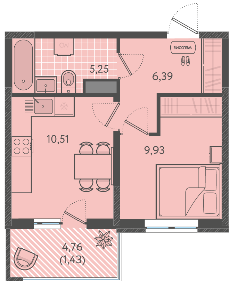 | 1 | 39.23 / 12.73 м² | от 4 743 200 руб. (120 907 руб./м²) | Планировка | |