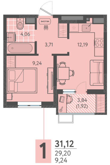 | 1 | 31.12 / 9.24 м² | от 4 948 080 руб. (159 000 руб./м²) | Планировка | |