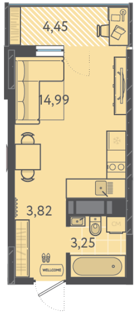 | студия | 23.4 / 14.99 м² | от 2 925 000 руб. (125 000 руб./м²) | Планировка | |