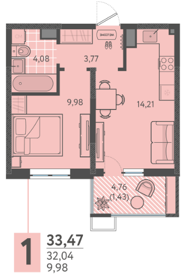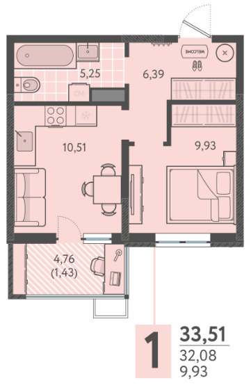 | 1 | 33.51 / 9.93 м² | от 5 328 090 руб. (159 000 руб./м²) | Планировка | |