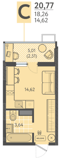 | студия | 20.7 / 14.62 м² | от 3 008 750 руб. (145 350 руб./м²) | Планировка | |