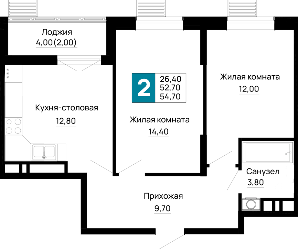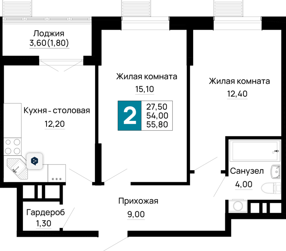 | 2 | 54.7 / 26.4 м² | от 6 837 500 руб. (125 000 руб./м²) | Планировка | |