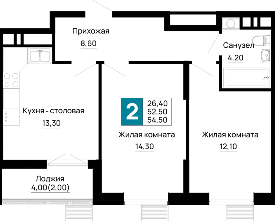 | 2 | 60.4 / 26.4 м² | от 7 852 000 руб. (130 000 руб./м²) | Планировка | |