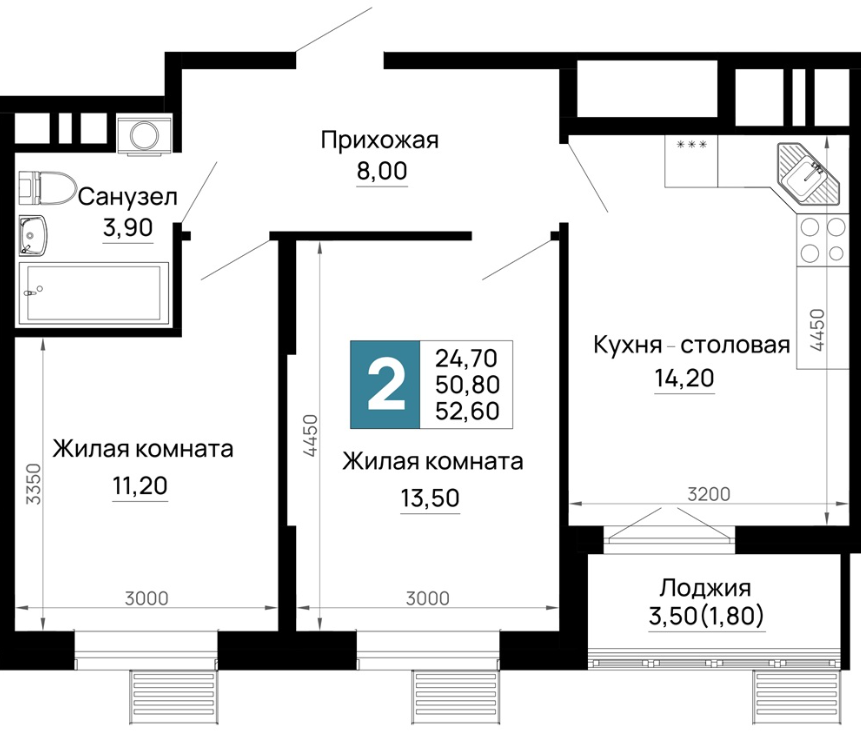 | 2 | 52.6 / 24.7 м² | от 6 838 000 руб. (130 000 руб./м²) | Планировка | |