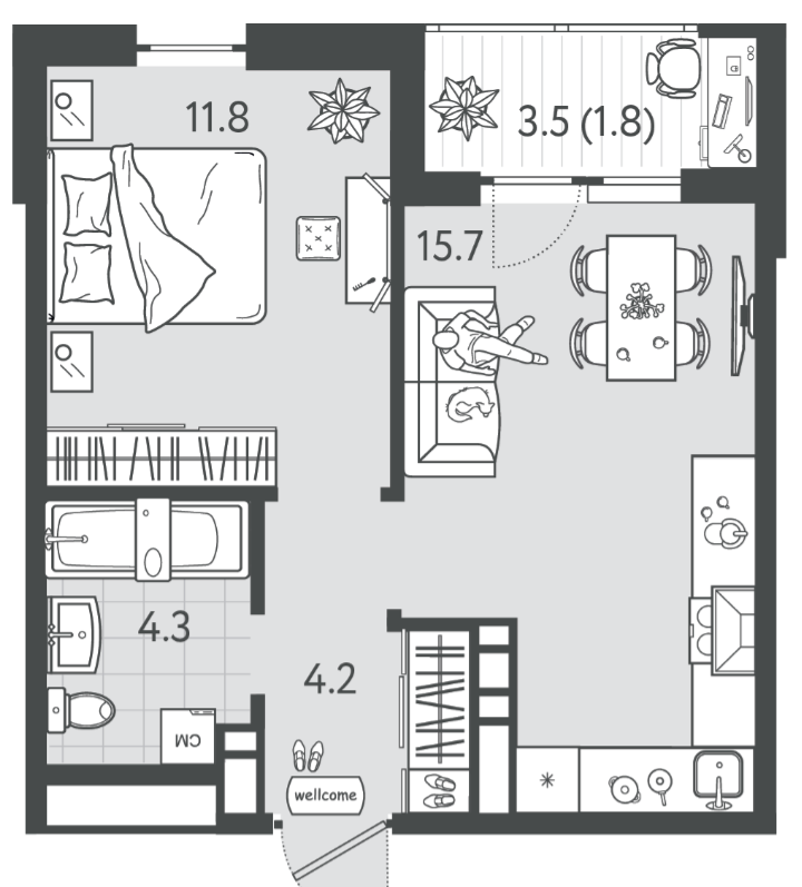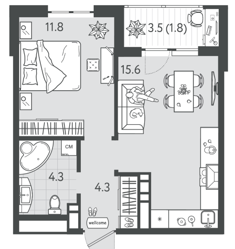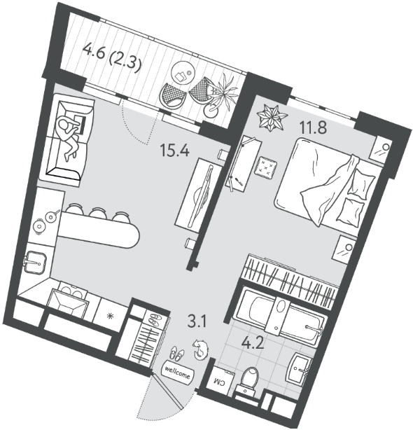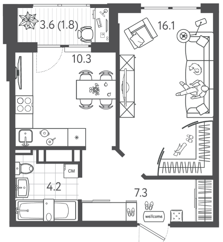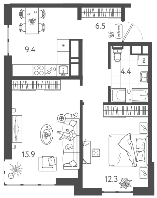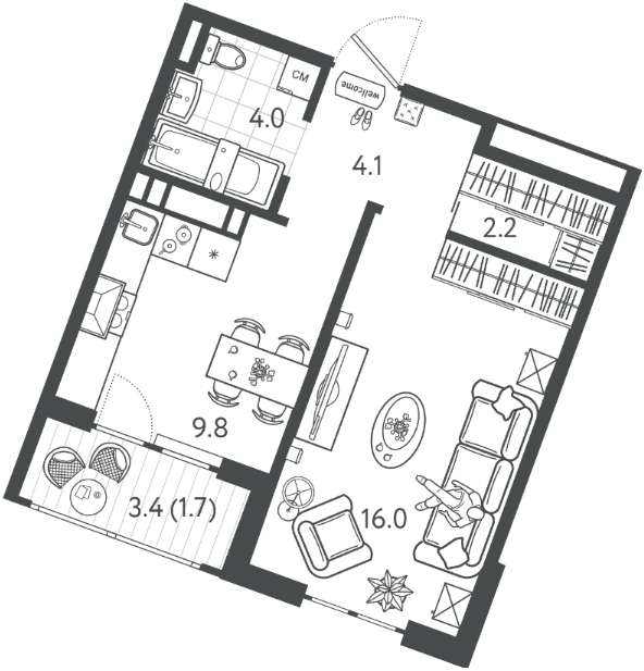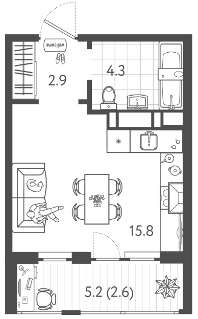 | студия | 25.05 / 15.8 м² | от 7 515 000 руб. (300 000 руб./м²) | Планировка | |
