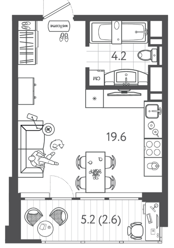 | студия | 25.95 / 19.6 м² | от 7 540 000 руб. (290 559 руб./м²) | Планировка | |