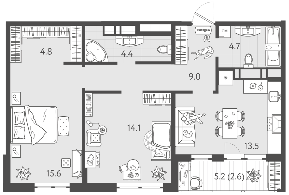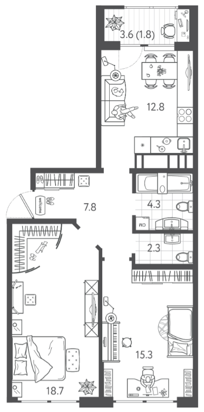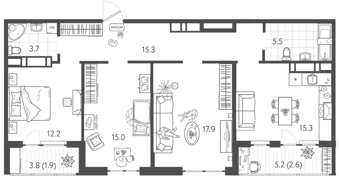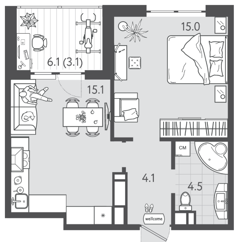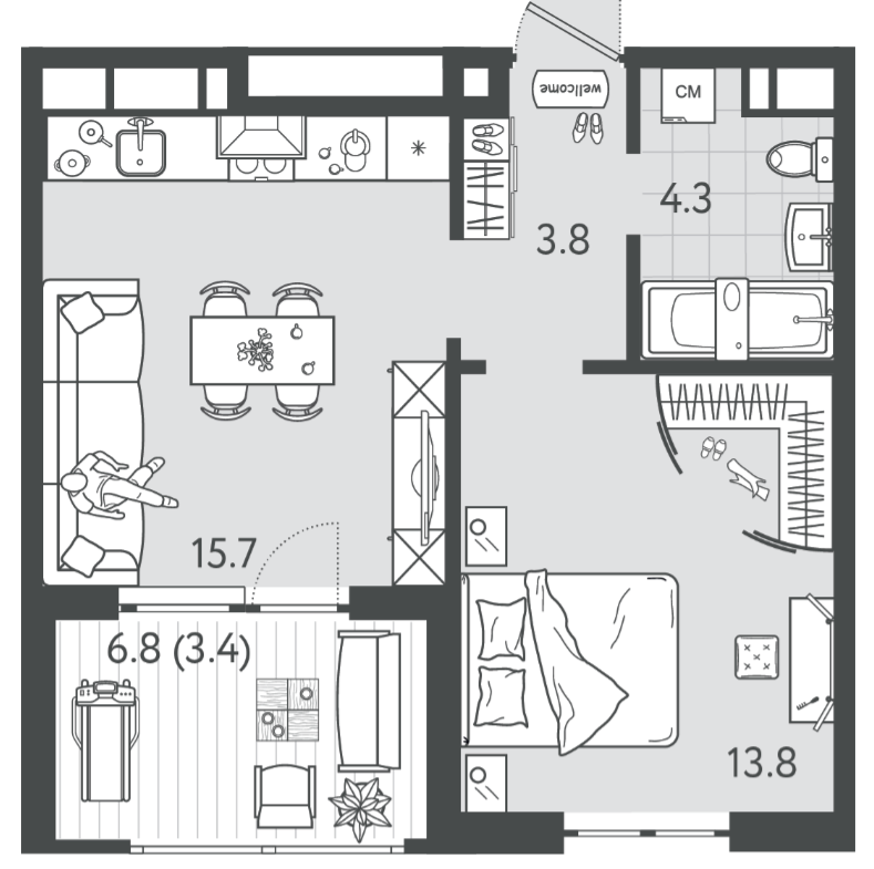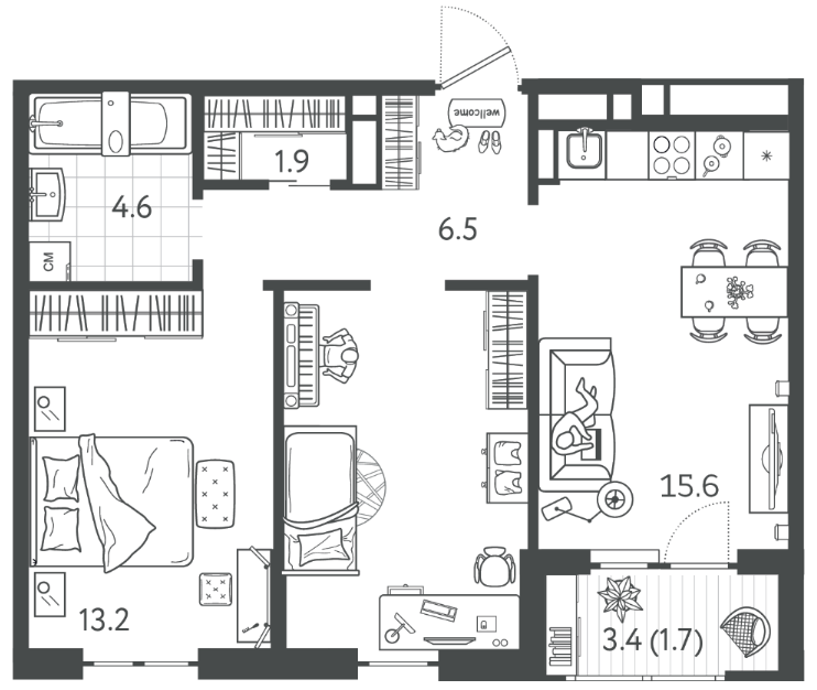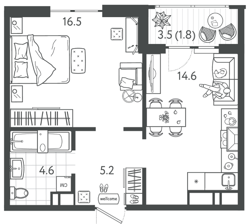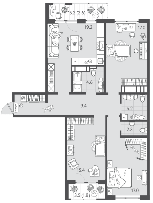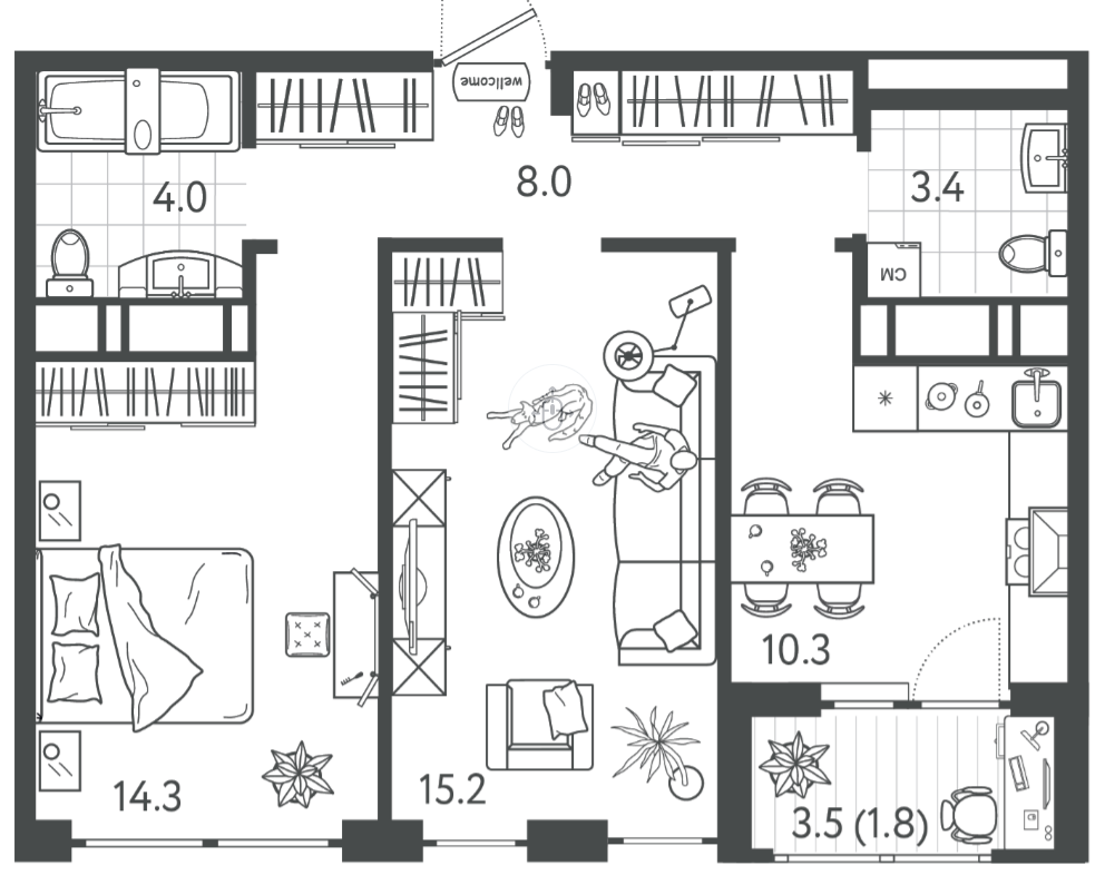 Меня завлекли планировки. Такой огромной гардеробной у меня еще не было! Теперь все мои платья будут в порядке. И сам комплекс такой светлый, стильный, дома не вплотную, есть где дышать.