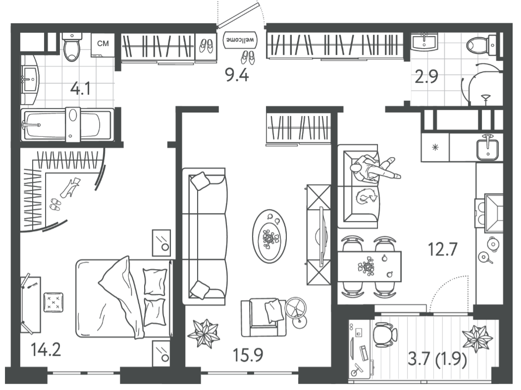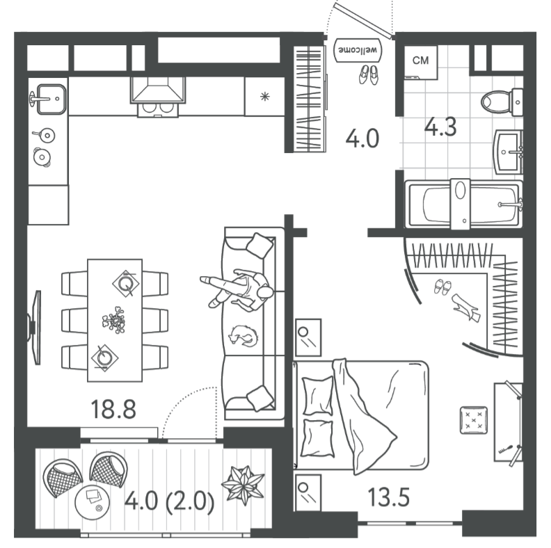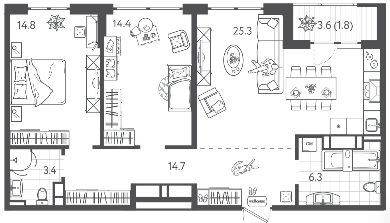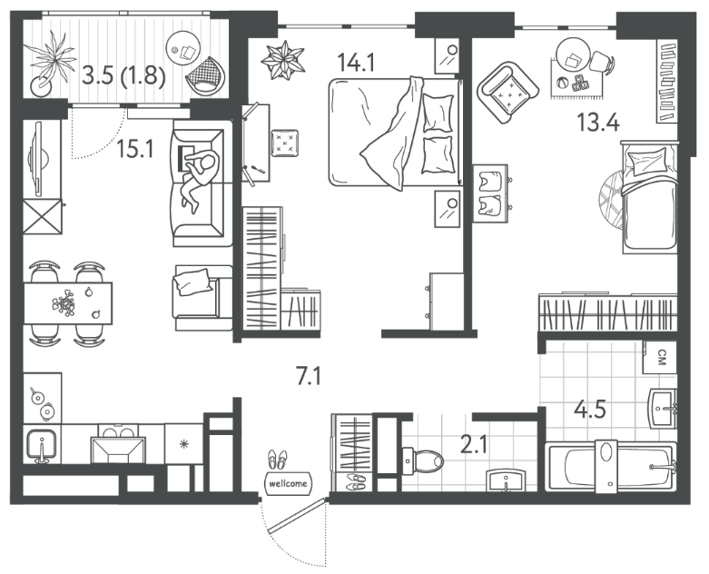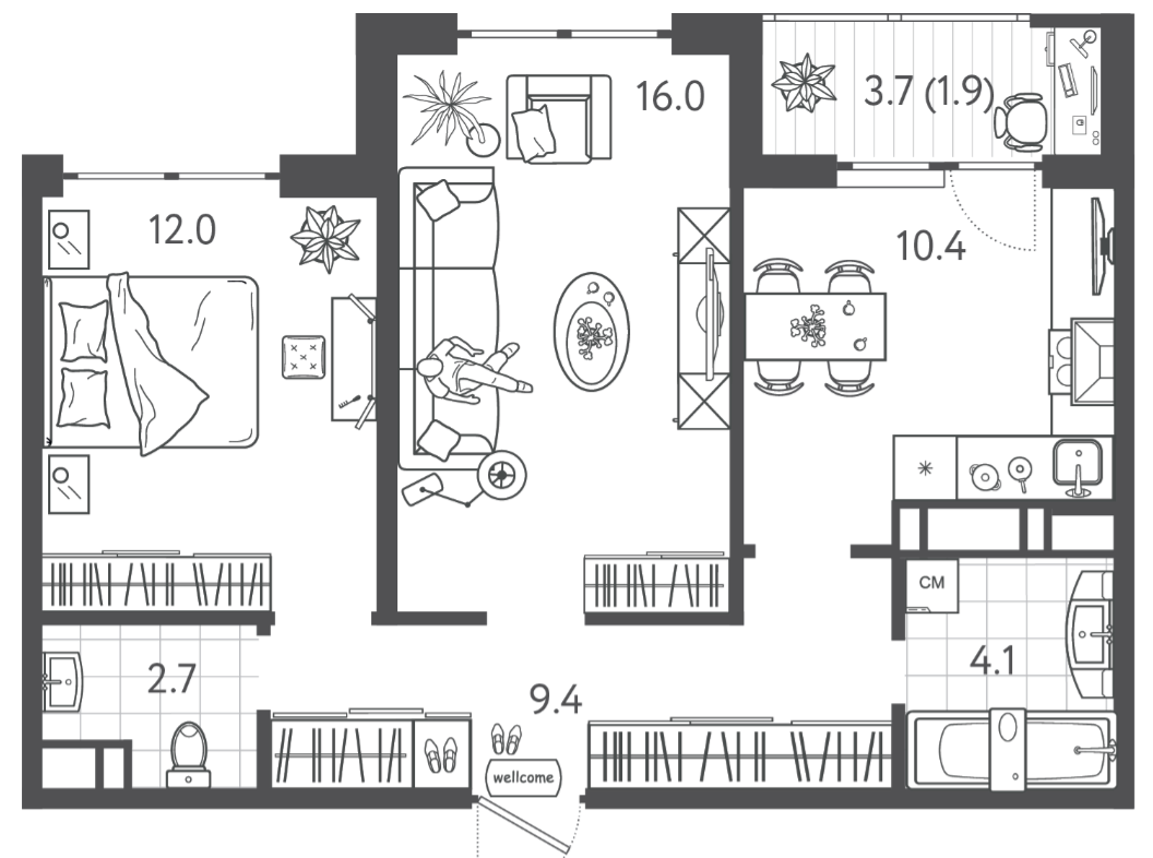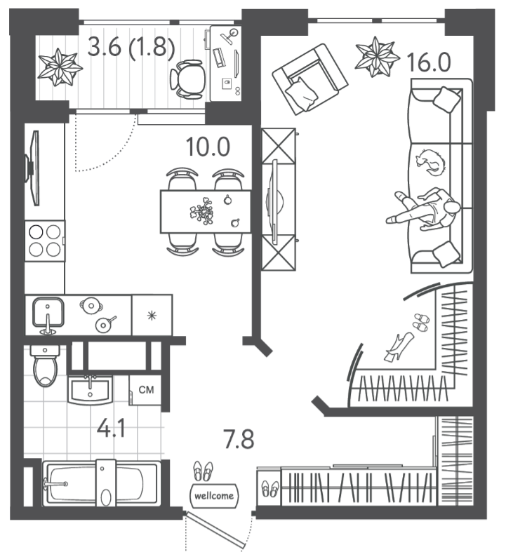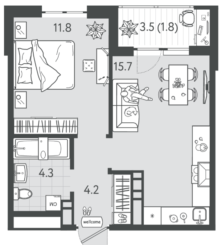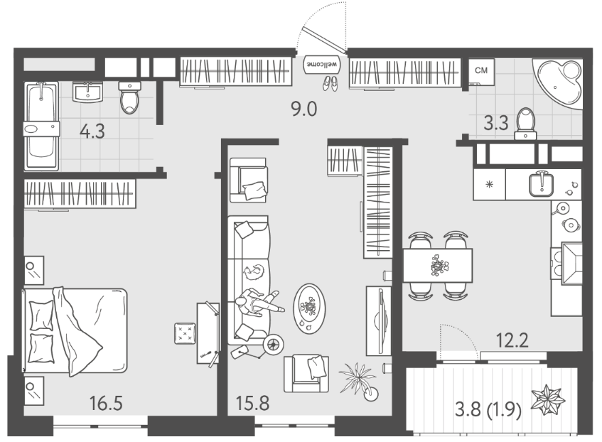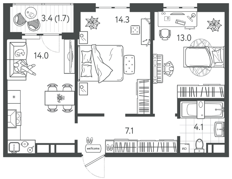Меня завлекли планировки. Такой огромной гардеробной у меня еще не было! Теперь все мои платья будут в порядке. И сам комплекс такой светлый, стильный, дома не вплотную, есть где дышать.