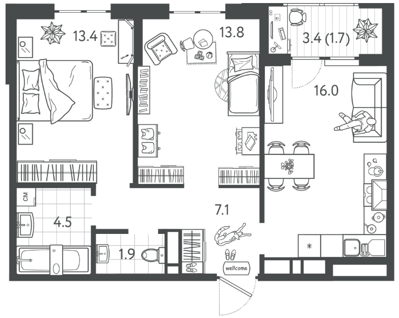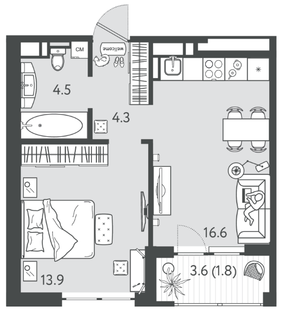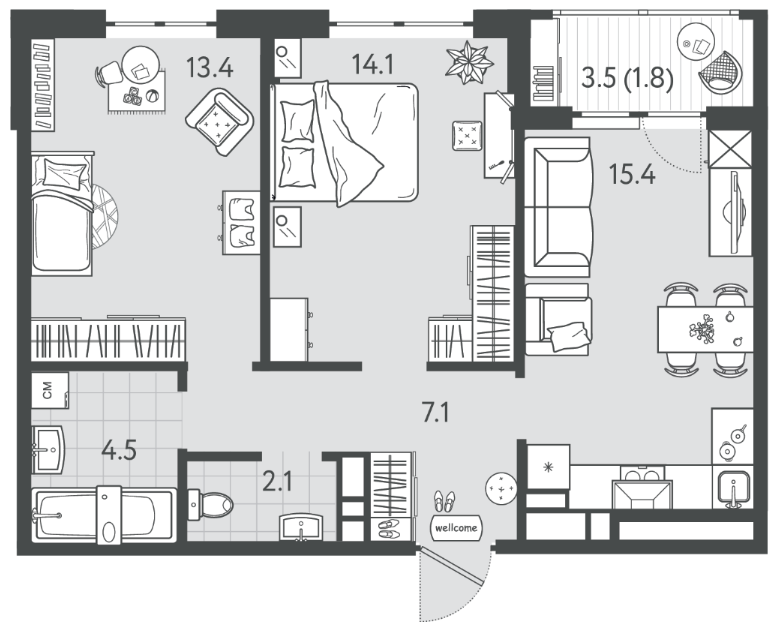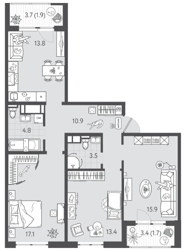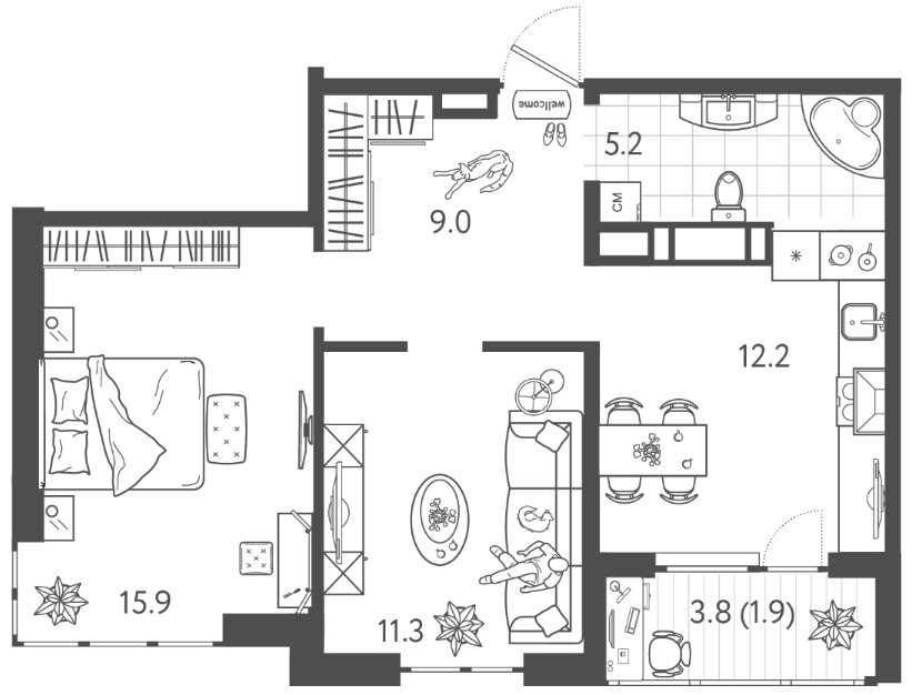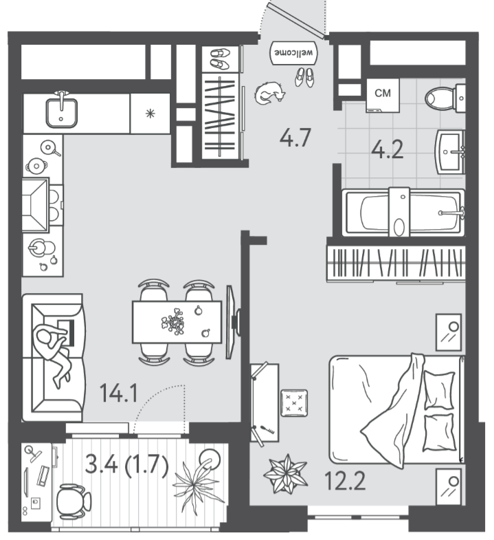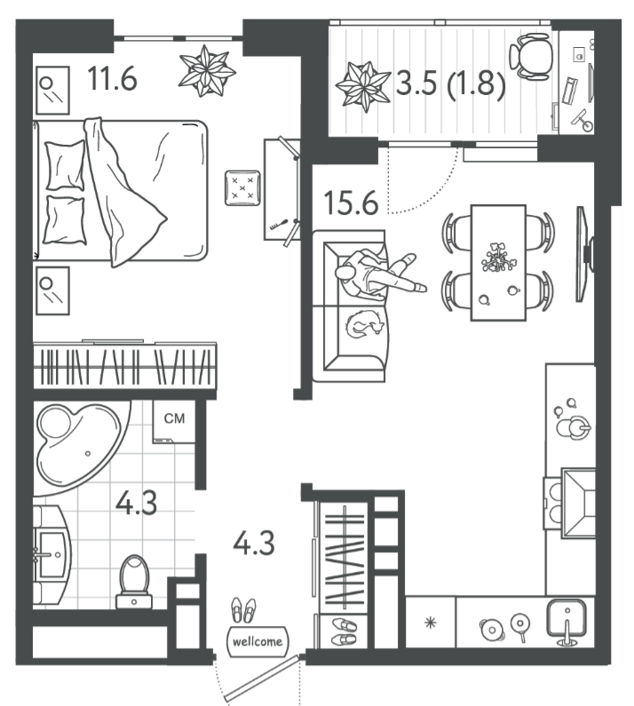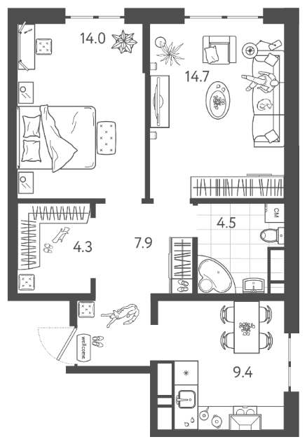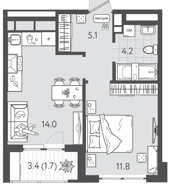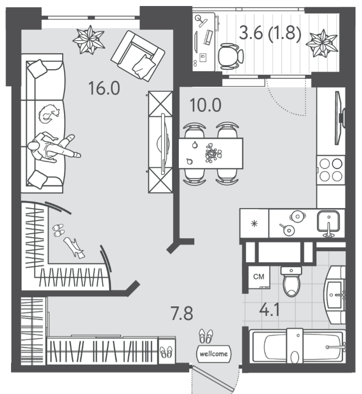 Меня завлекли планировки. Такой огромной гардеробной у меня еще не было! Теперь все мои платья будут в порядке. И сам комплекс такой светлый, стильный, дома не вплотную, есть где дышать.