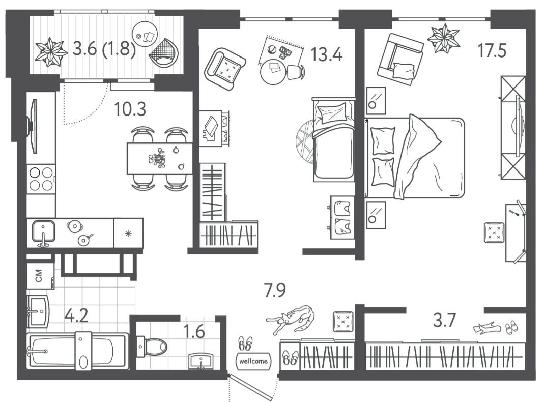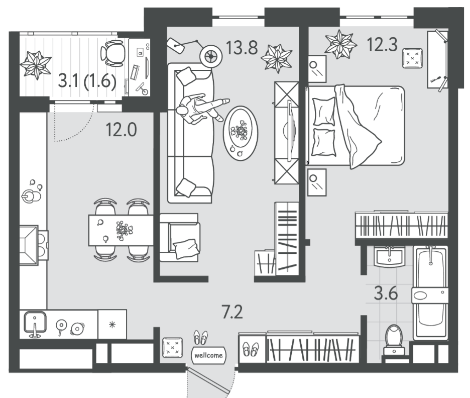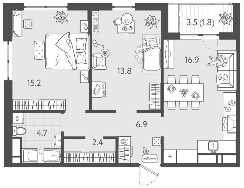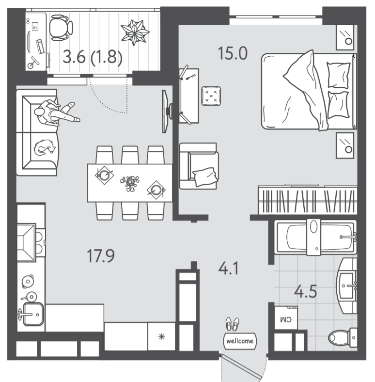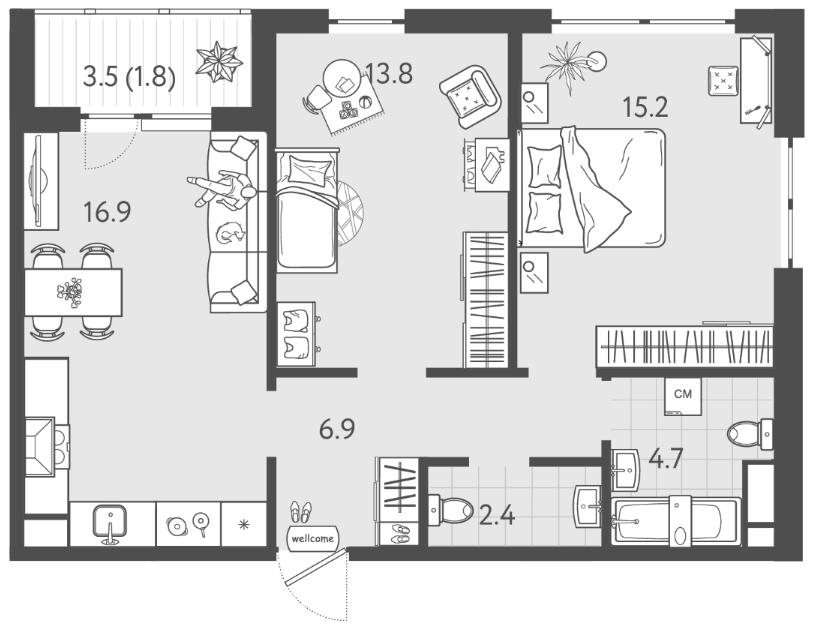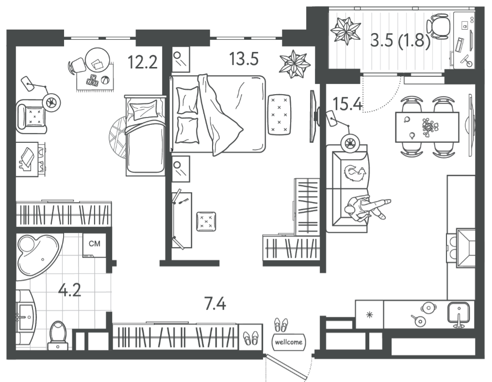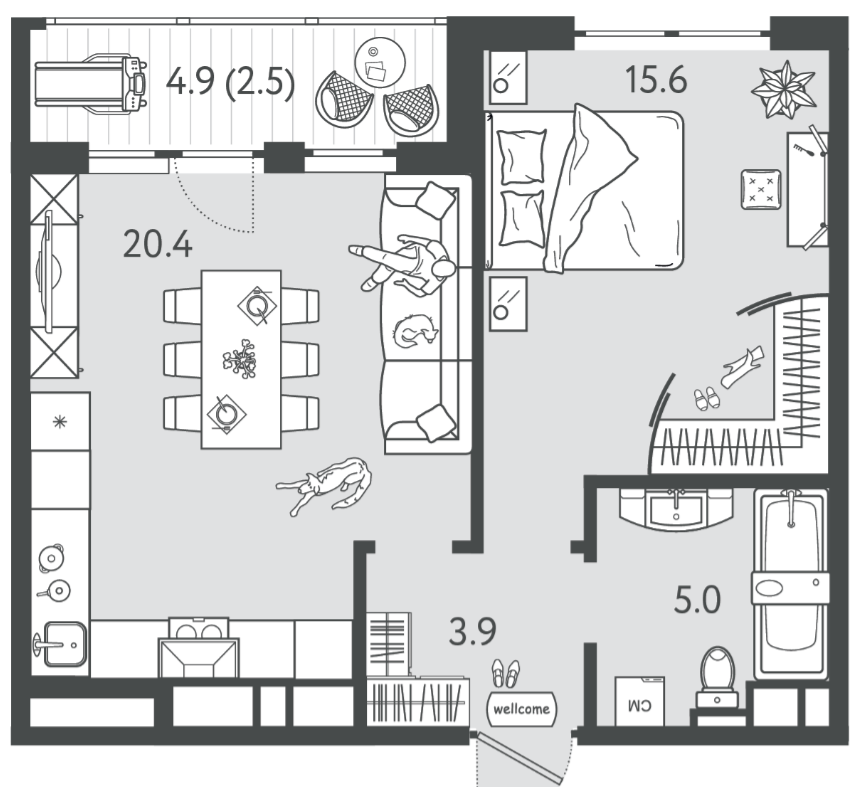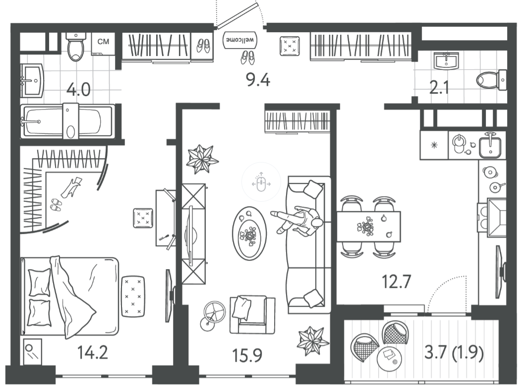 Меня завлекли планировки. Такой огромной гардеробной у меня еще не было! Теперь все мои платья будут в порядке. И сам комплекс такой светлый, стильный, дома не вплотную, есть где дышать.