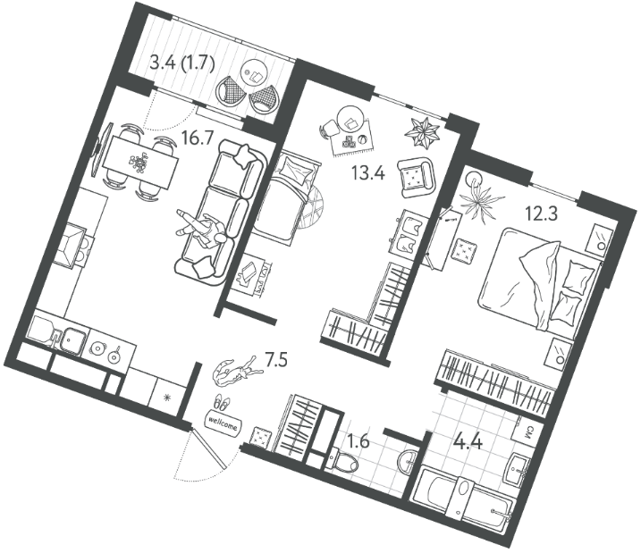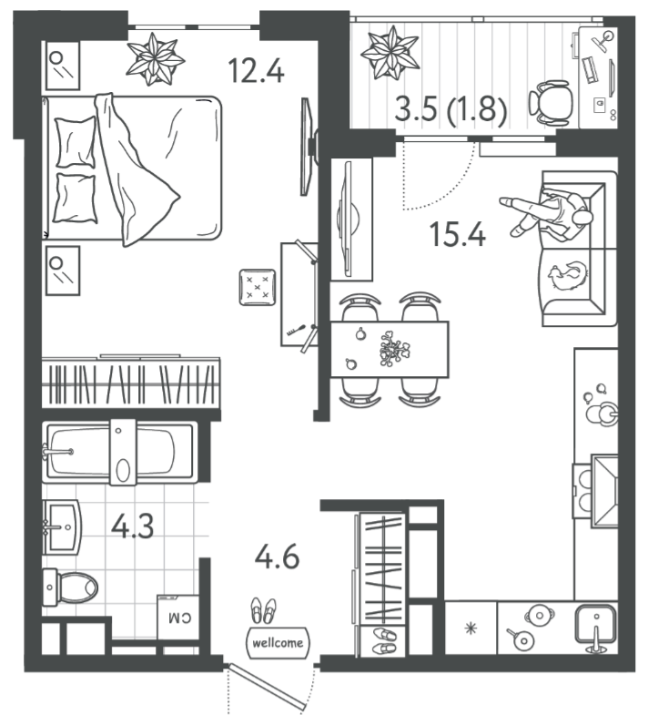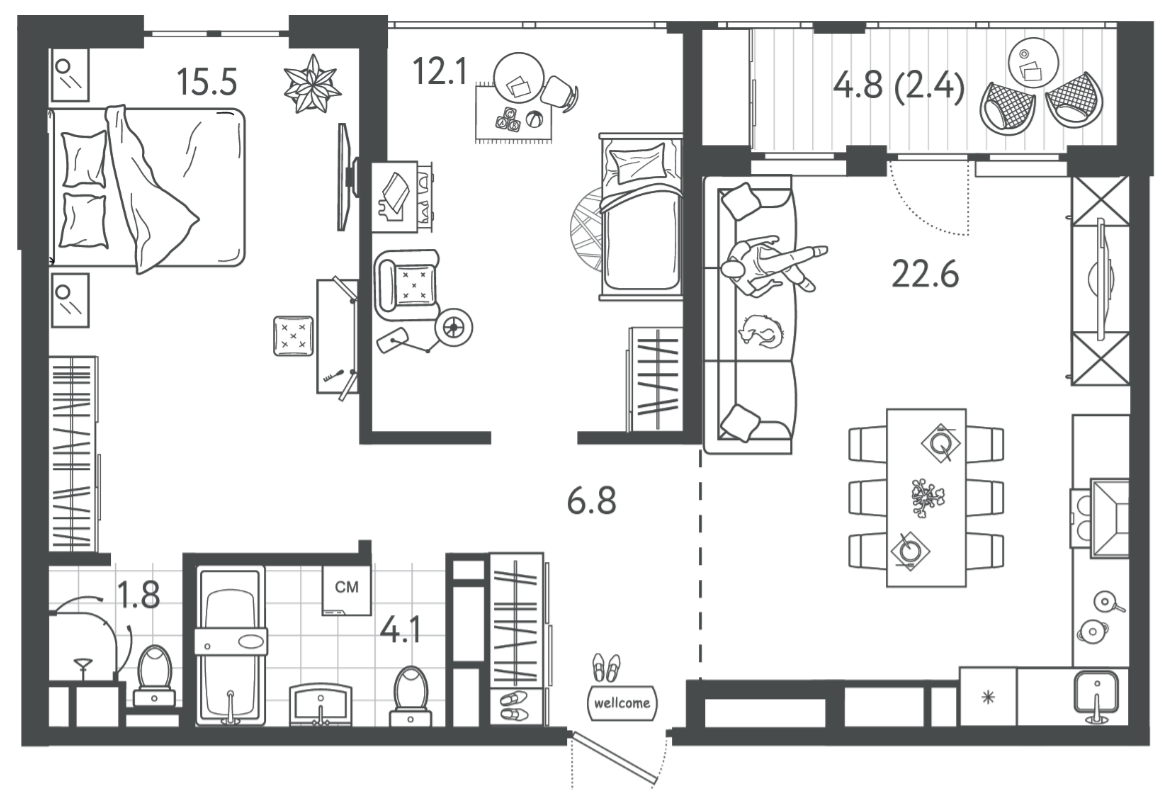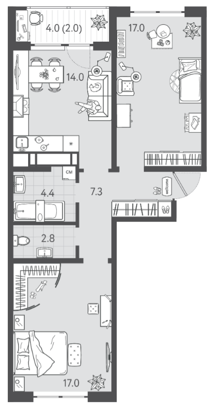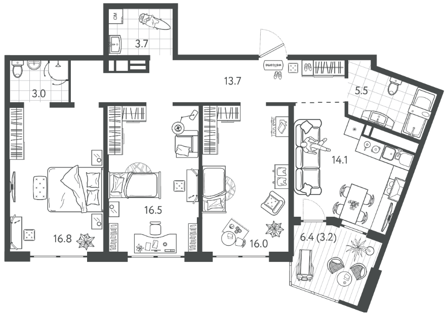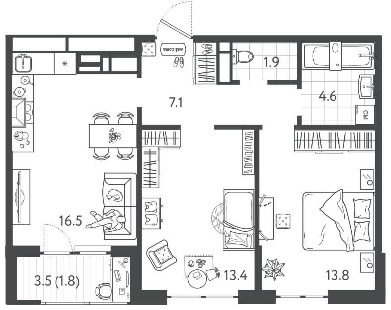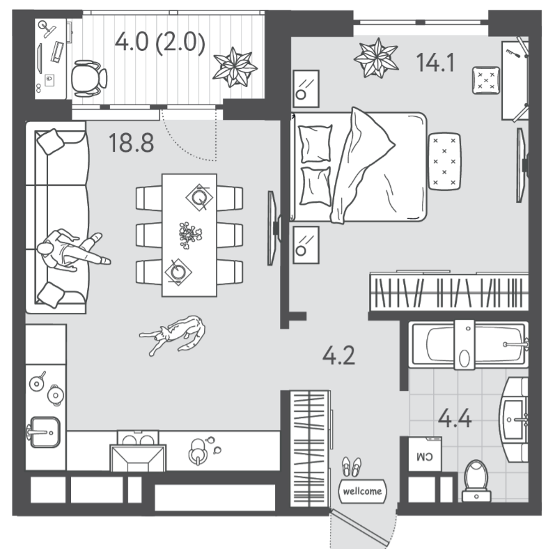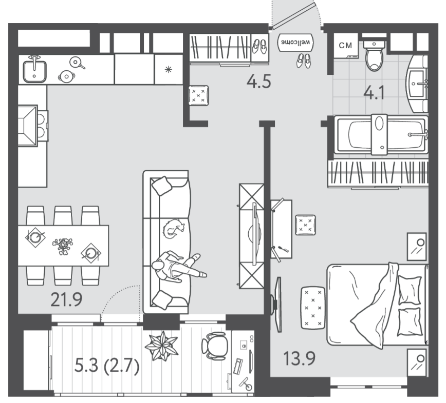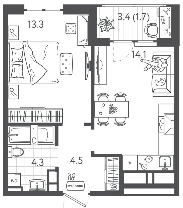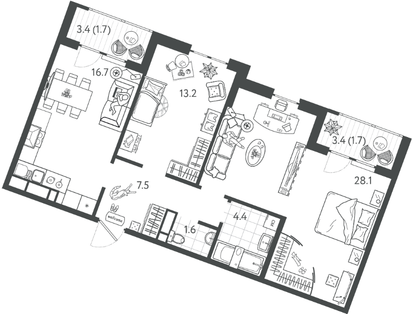 Меня завлекли планировки. Такой огромной гардеробной у меня еще не было! Теперь все мои платья будут в порядке. И сам комплекс такой светлый, стильный, дома не вплотную, есть где дышать.