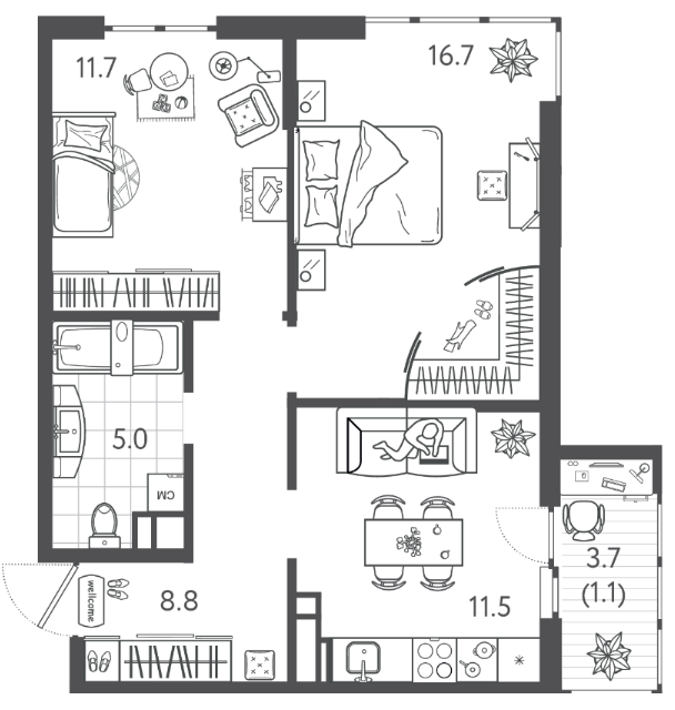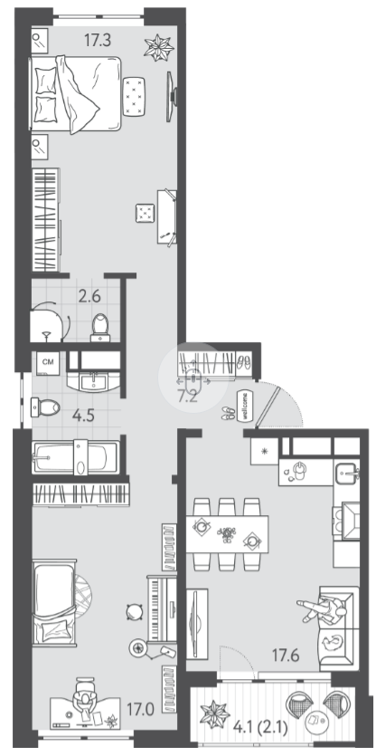 Для меня решающим было расположение. 7 минут до центра на машине или 15 минут пешком - супер! И дизайн общих зон просто на высшем уровне - лаконично, красиво, будто не подъезд дома, а дорогой отель или ресепшн где-то в музее)