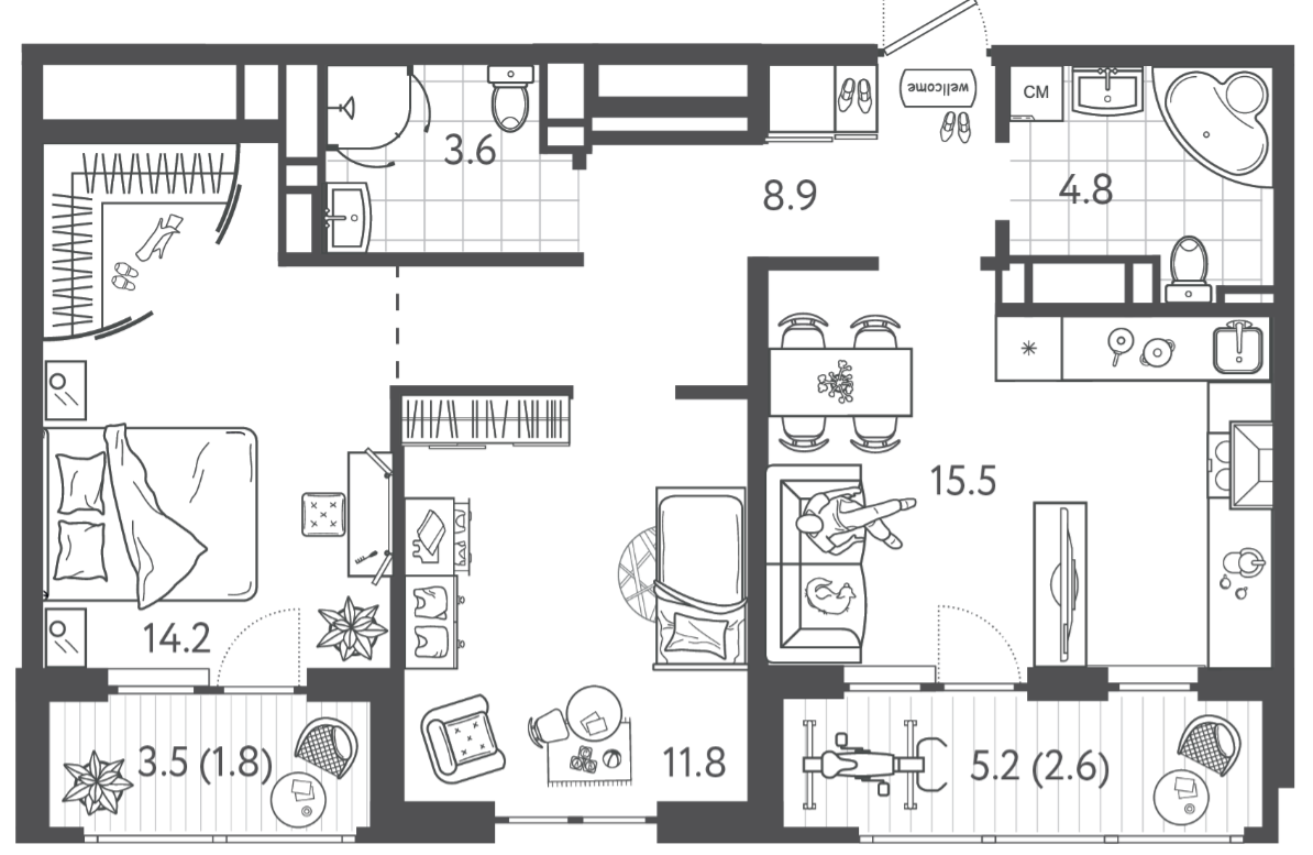 Взяли двушку в комплексе Все свои, больше всего понравилось что это центр. Рядом с домом много коммерции открывать планируют. Во дворе обещают красивый парк разбить, ну и сама архитектура радует, отличается от других новостроек в лучшую сторону.