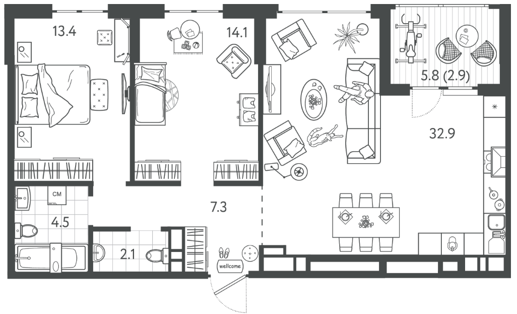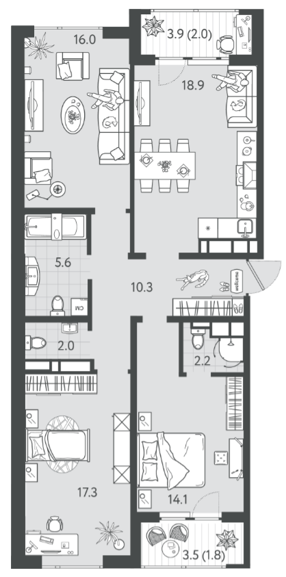 | 3 | 129.35 / 58.4 м² | от 40 098 500 руб. (310 000 руб./м²) | Планировка | |