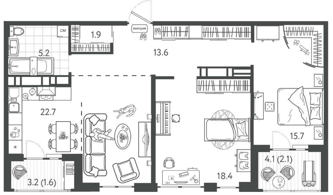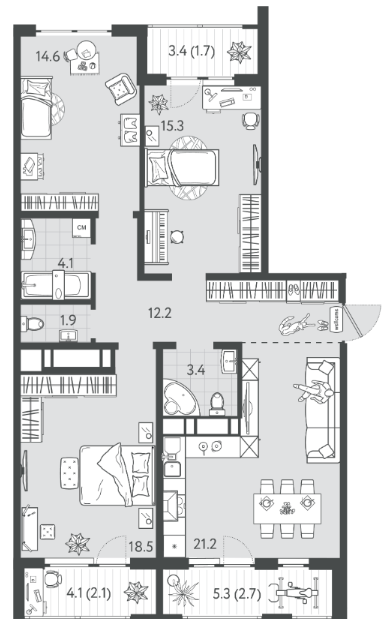 | 3 | 84.5 / 51.6 м² | от 18 595 400 руб. (220 064 руб./м²) | Планировка | |