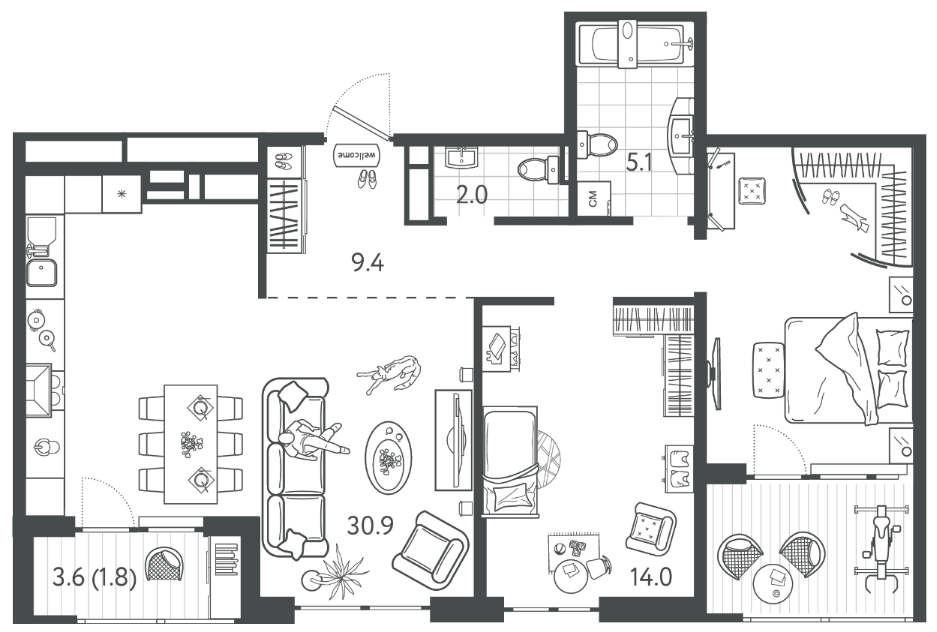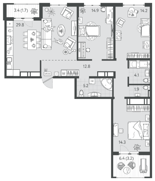 | 3 | 89.4 / 50.4 м² | от 18 952 800 руб. (212 000 руб./м²) | Планировка |