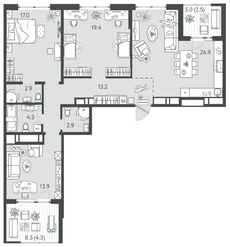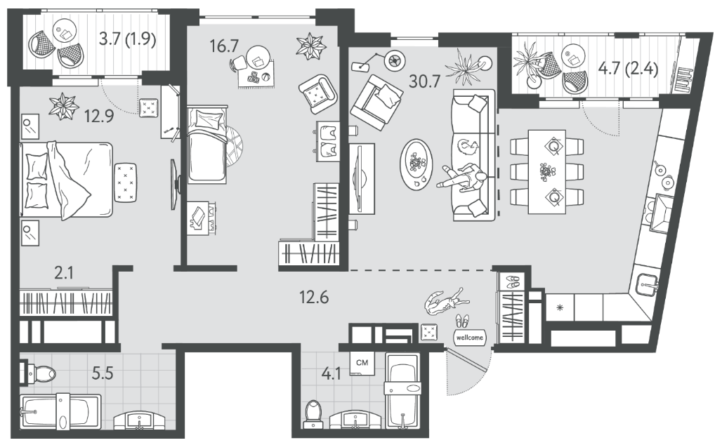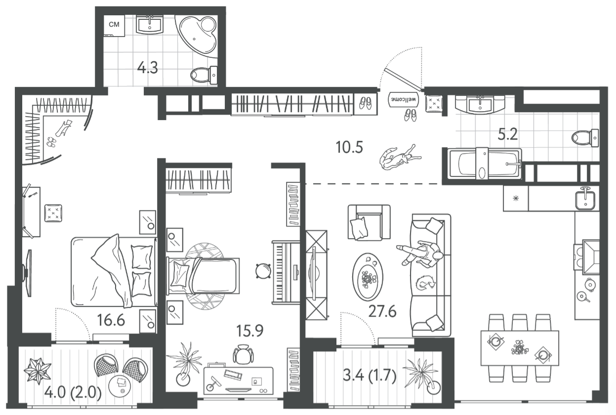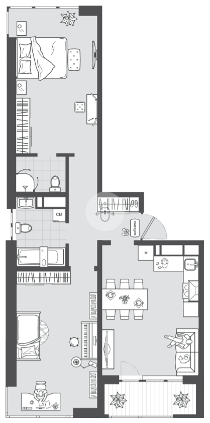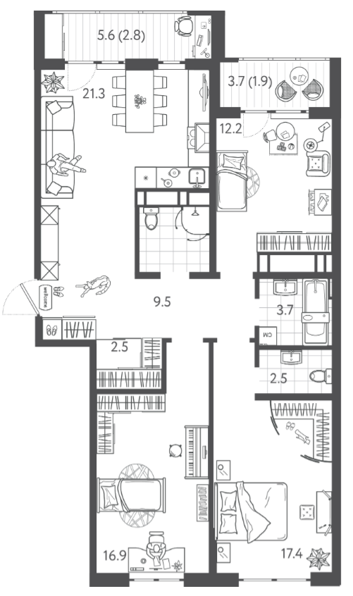 Взяли большую квартиру на последнем этаже, чтобы жить в пентхаусе. Жаль девелопер не внедрил ...