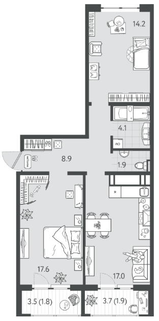 | 2 | 60.95 / 19.0 м² | от 14 083 500 руб. (231 066 руб./м²) | Планировка | |