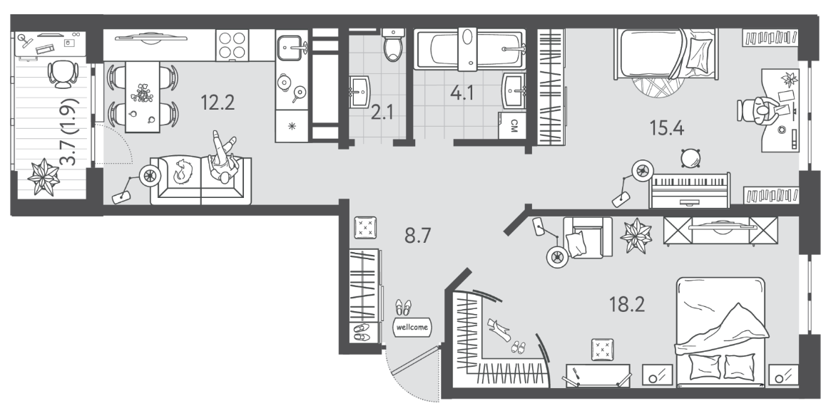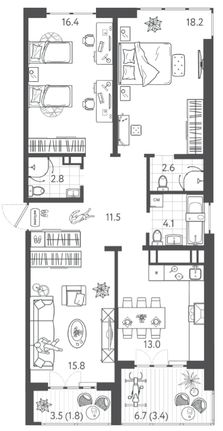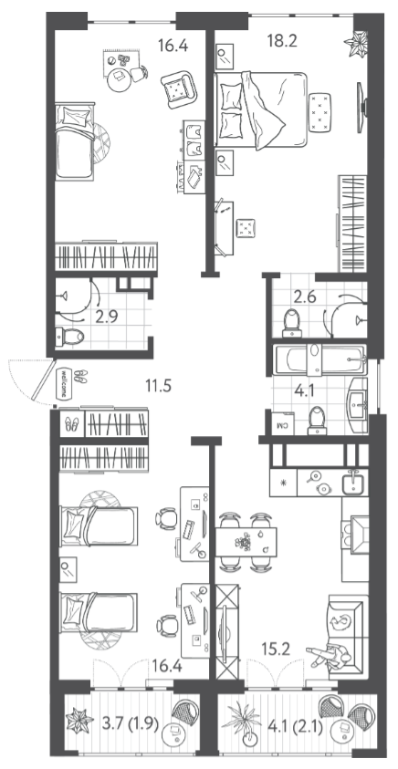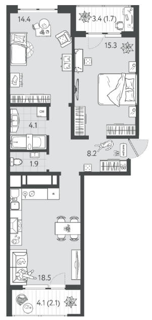 | 3 | 82.15 / 46.4 м² | от 18 894 500 руб. (230 000 руб./м²) | Планировка | |