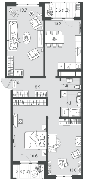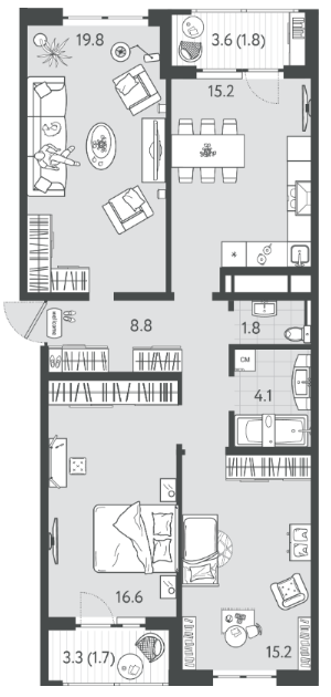 | 3 | 88.1 / 47.4 м² | от 19 635 000 руб. (222 872 руб./м²) | Планировка | |