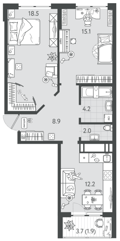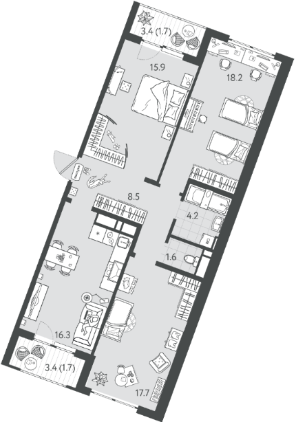 | 2 | 59.05 / 29.8 м² | от 13 398 750 руб. (226 905 руб./м²) | Планировка | |